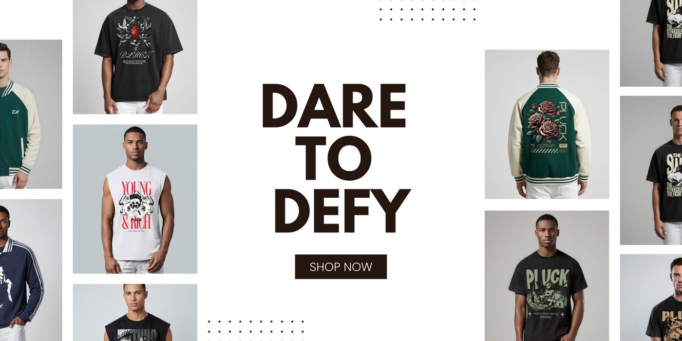 At PLUCK, we believe that fashion is more than just clothing; it's an expression of your inner strength and individuality. Our slogan, "Dare to Defy," encapsulates our mission to inspire you to break boundaries and embrace your true self. Each piece in our collection is designed to empower you, giving you the confidence to stand out and make a statement.